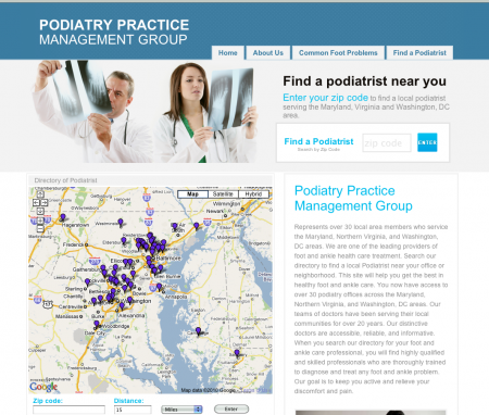 I worked for Omega Systems Group for this site. Our client wanted a site that would show some basic information about the regional network but would, more importantly, allow for the user to search a listing by zip code to find the nearest Podiatrist.